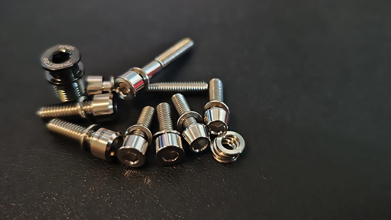 チタンボルトは削り出しで作られることが多く、ステンボルトは冷間鍛造による量産品が一般的です。